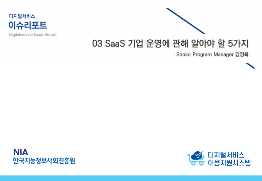 | 제목 | [2021-07] 디지털서비스 이슈리포트 03 SaaS 기업 운영에 관해 알아야 할 5가지 |