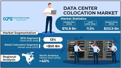 데이터 코로케이션 시장 규모는 2023년 768억 달러에서 2032년 2,129억 달러로 연간 11.5%(CAGR) 성장할 전망 - Global market insight
