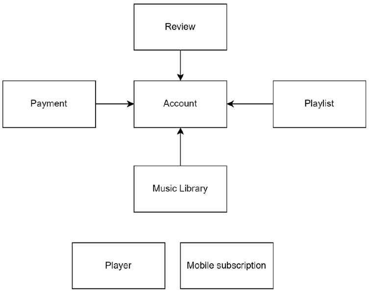 - 사용자 관리 마이크로서비스와 음악 라이브러리 마이크로서비스는 시스템에 가장 중요한 역할을 할 것이다. 음악 라이브러리 마이크로서비스와 재생 목록 마이크로서비스는 시스템이 성장하고 더 많은 노래와 사용자가 추가됨에 따라 확장될 가능성이 가장 높다. 증가된 로드를 처리하기 위해 음악 라이브러리 마이크로서비스를 수평으로 확장해야 할 수도 있고, 증가된 재생 목록 수를 처리하기 위해 재생 목록 마이크로서비스를 수직으로 확장해야 할 수도 있다. 평가 및 리뷰 마이크로서비스와 플레이어 사용자 정의 마이크로서비스는 시간이 지남에 따라 변경될 수 있는 사용자 기본 설정을 포함하므로 변경될 가능성이 가장 높다.
