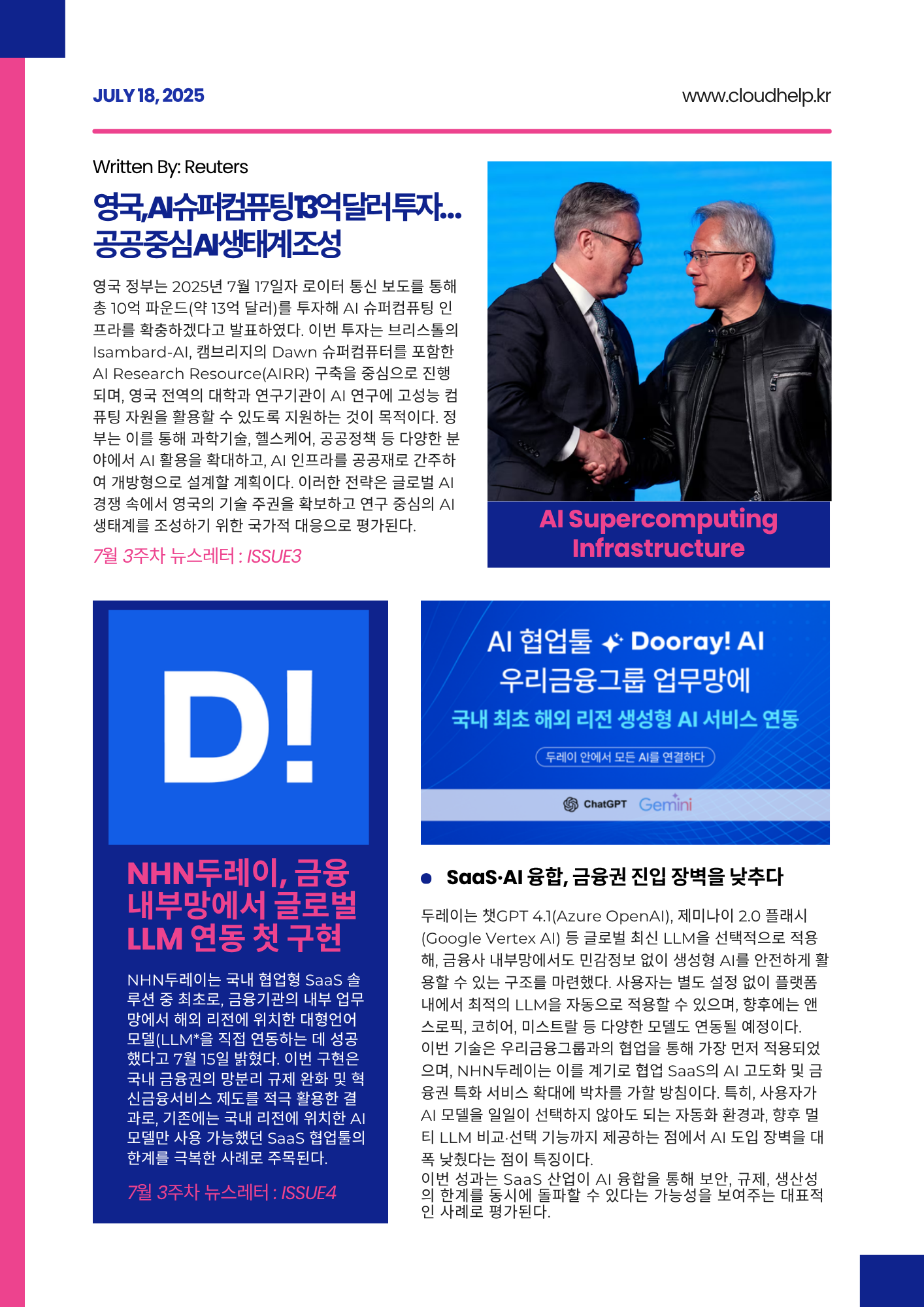 국내외 클라우드·SaaS·AI관련 주요 소식과 이슈를 주간 뉴스레터 콘텐츠로 정리해 제공합니다.