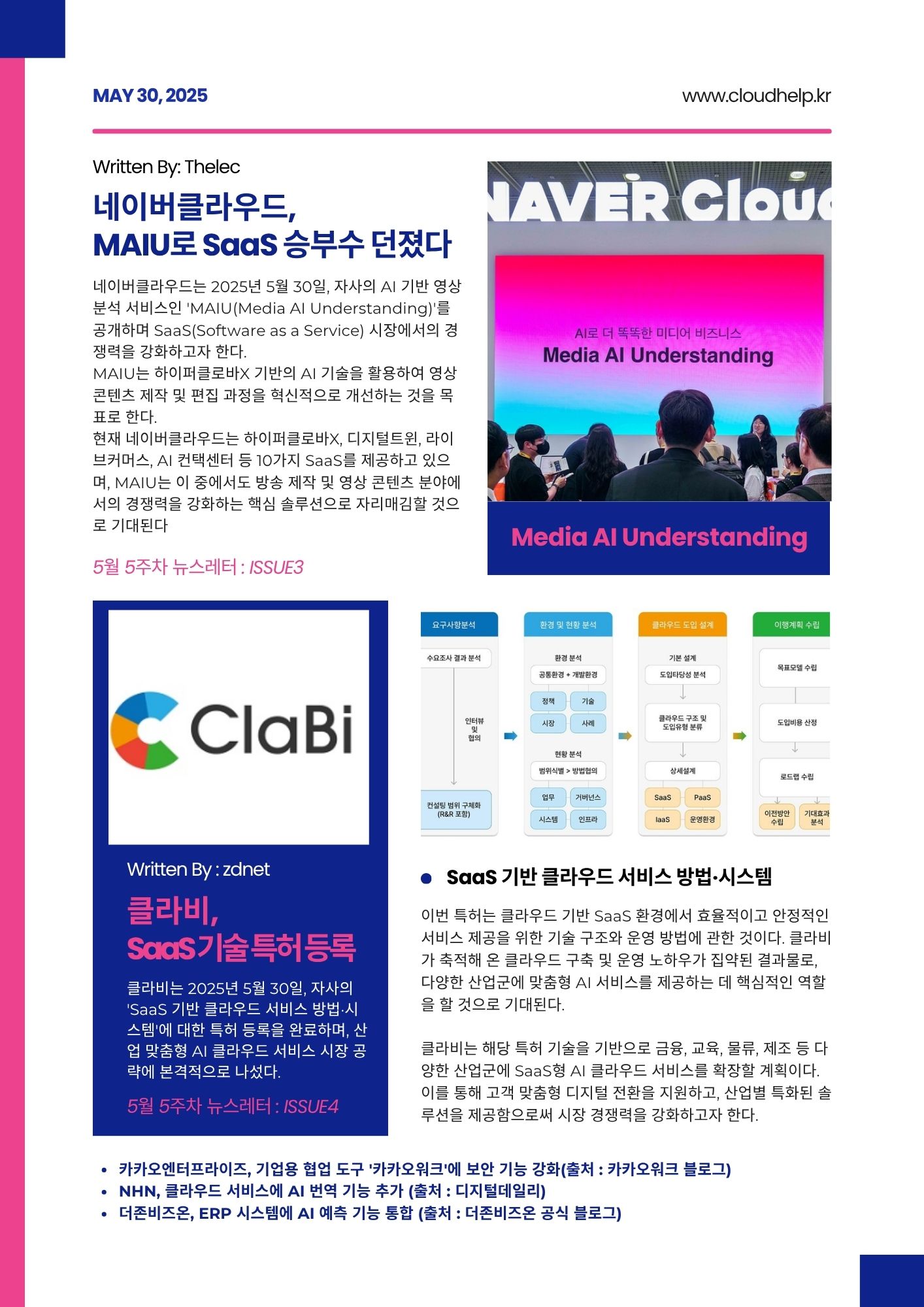 국내외 클라우드·SaaS·AI관련 주요 소식과 이슈를 주간 뉴스레터 콘텐츠로 정리해 제공합니다.