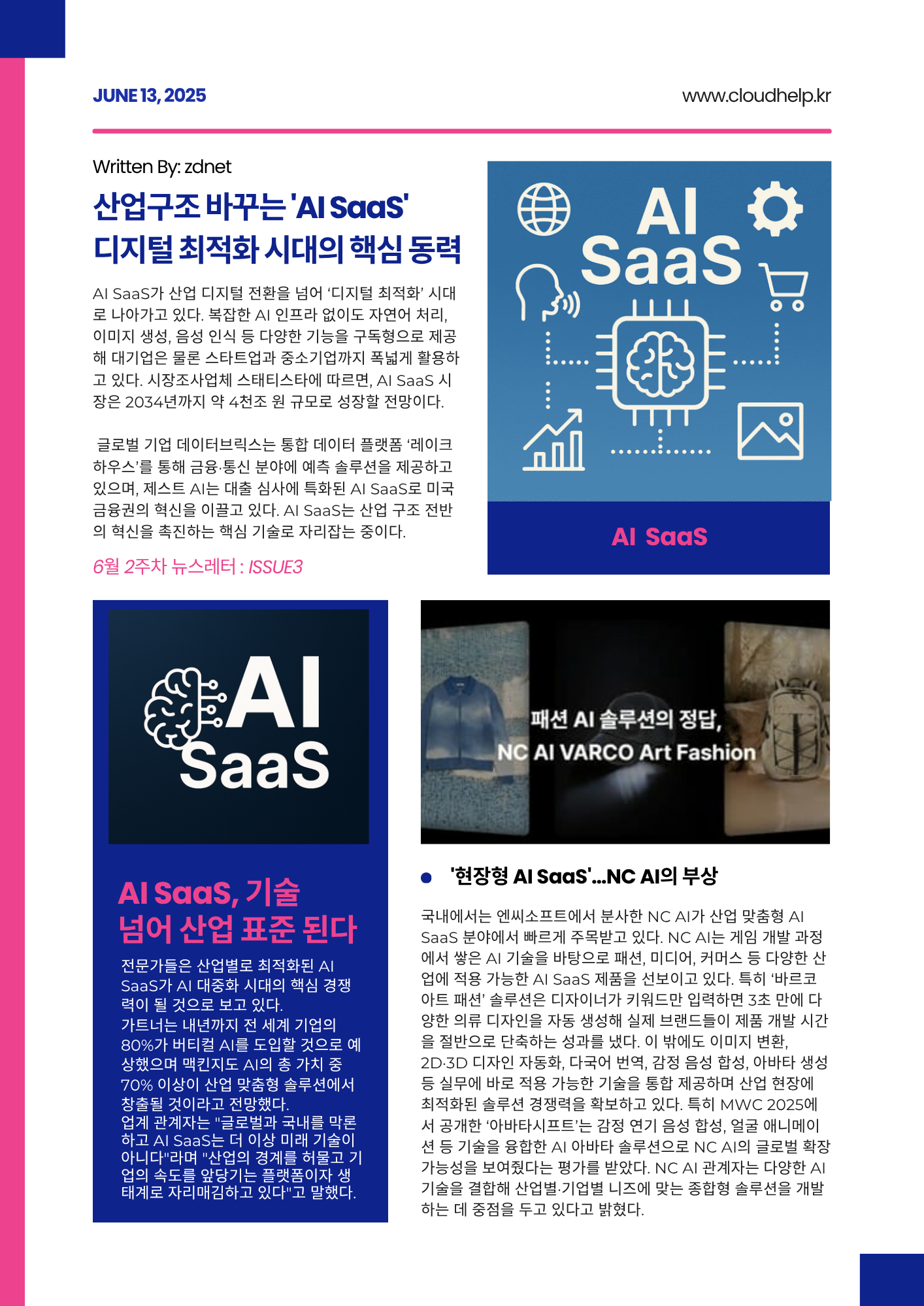 국내외 클라우드·SaaS·AI관련 주요 소식과 이슈를 주간 뉴스레터 콘텐츠로 정리해 제공합니다.