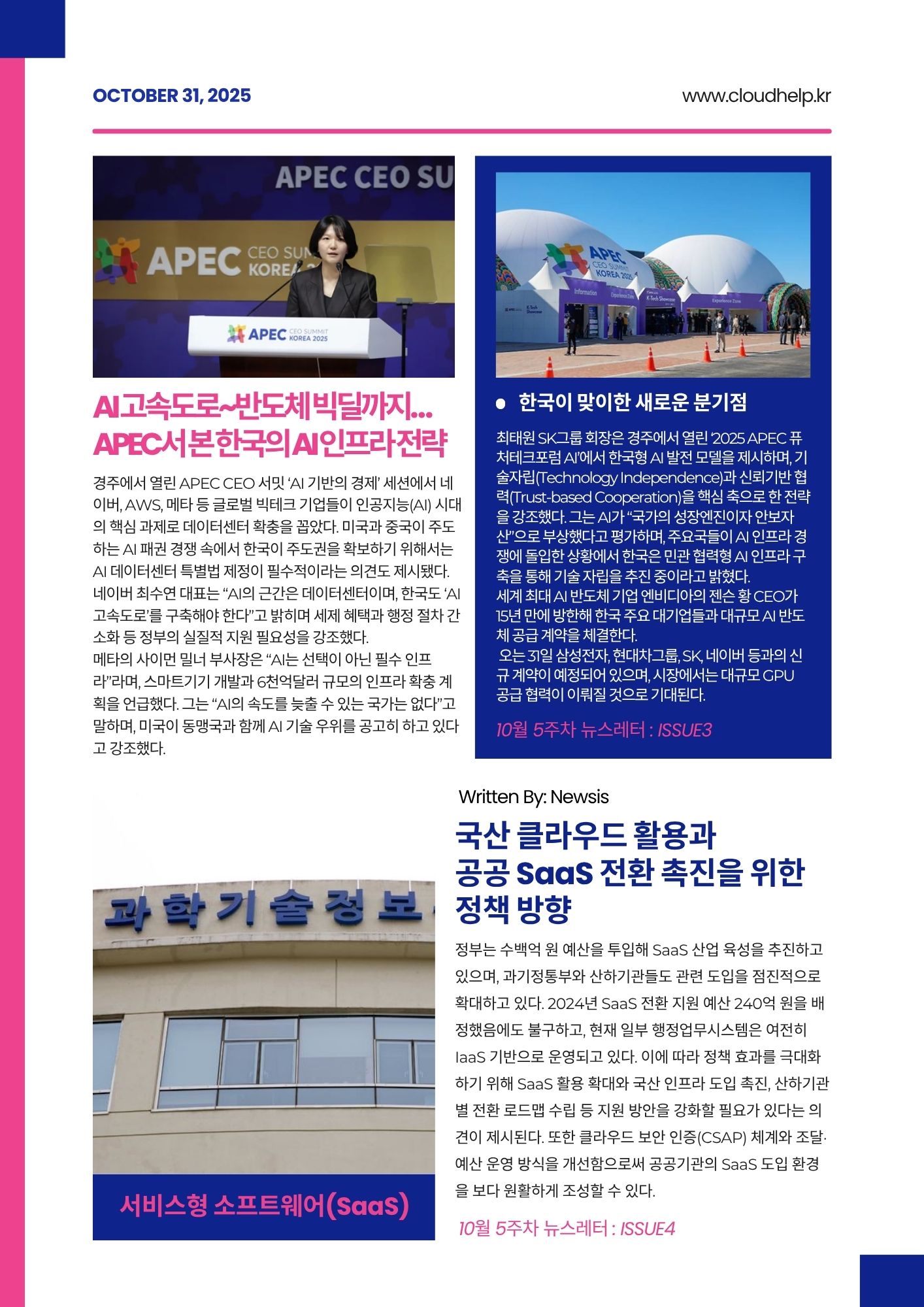 국내외 클라우드·SaaS·AI관련 주요 소식과 이슈를 주간 뉴스레터 콘텐츠로 정리해 제공합니다.