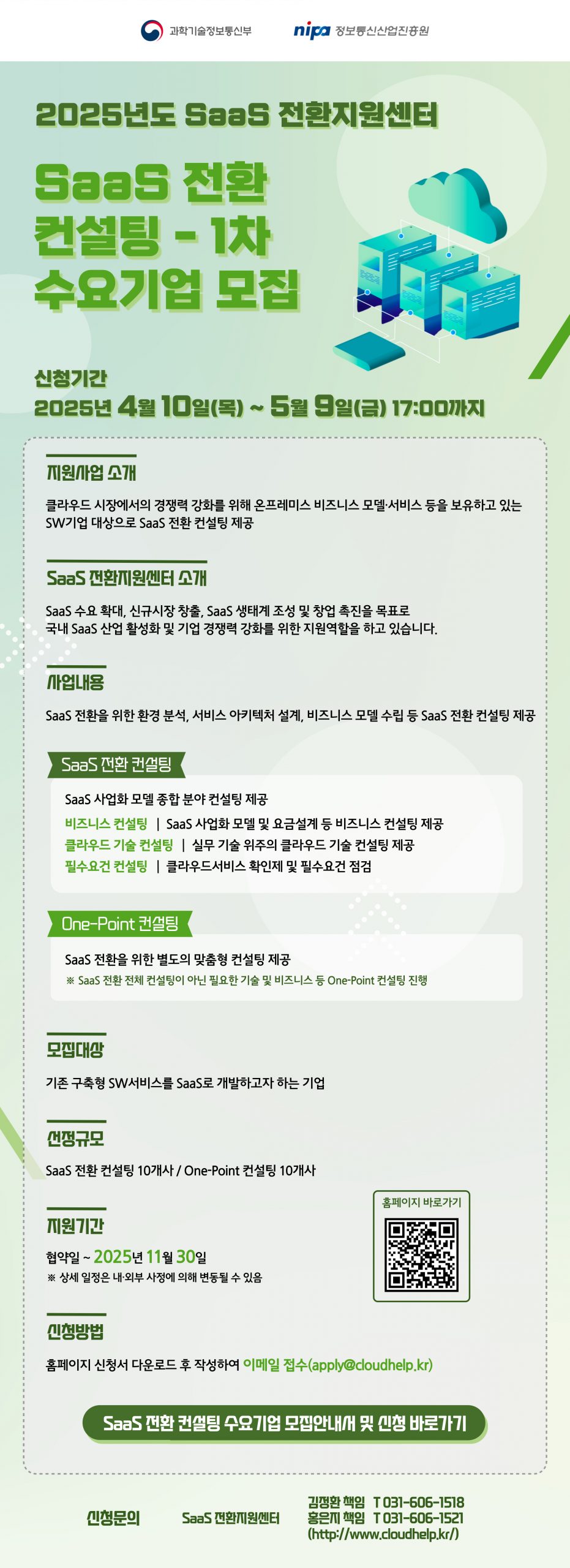 2025년도 SaaS 전환 컨설팅 1차 수요기업 모집공고(~5.9)