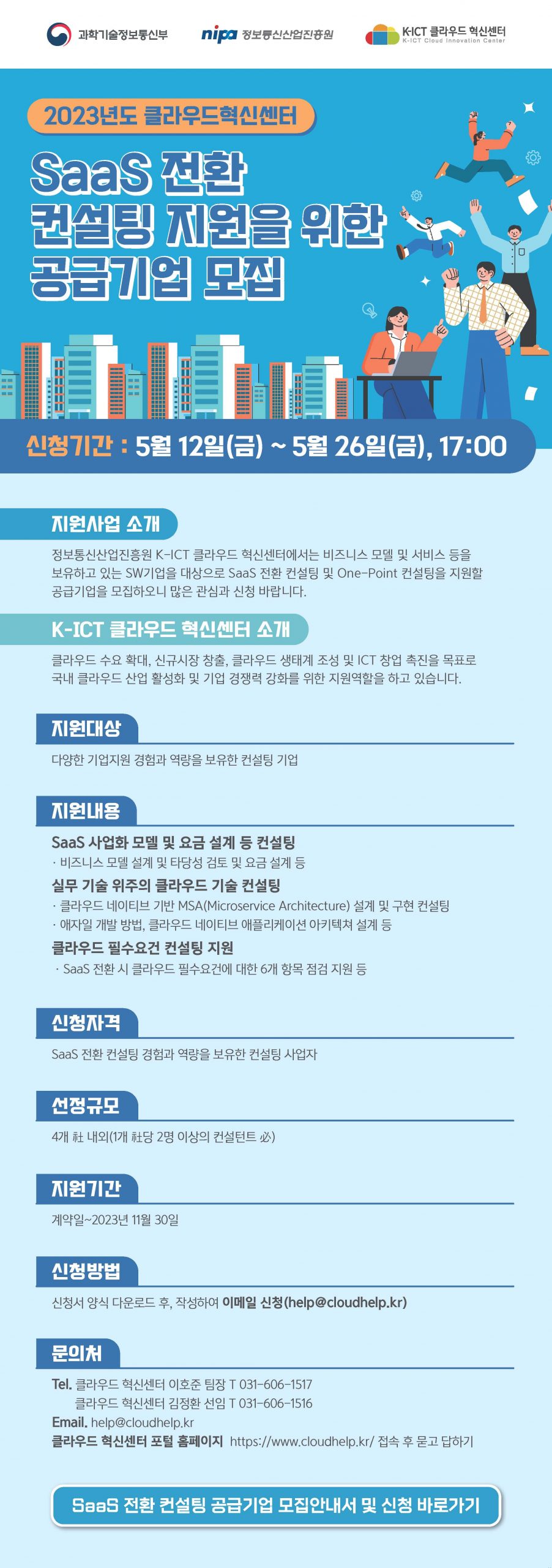 2023년도 클라우드 혁신센터 SaaS 전환컨설팅 지원 공급기업 공고(~5.26)
