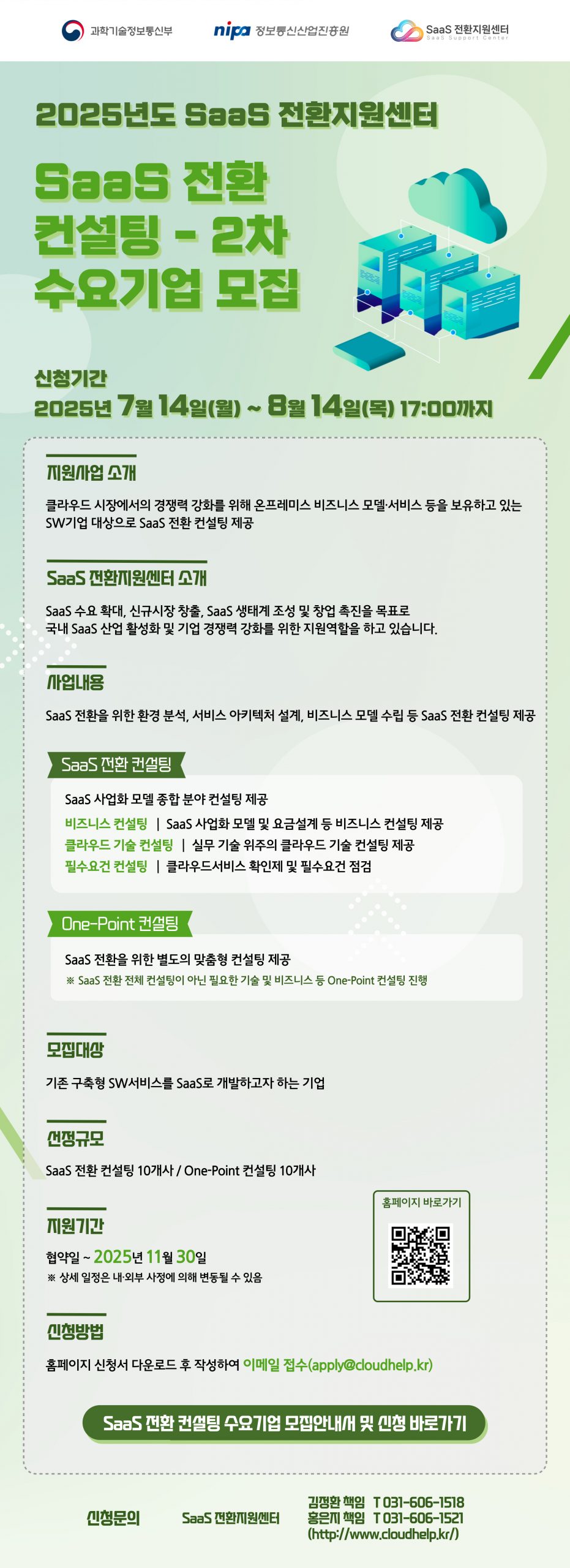 2025년도 SaaS 전환 컨설팅 2차 수요기업 모집공고(~8.14)