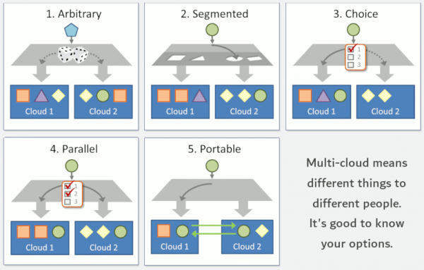 멀티 클라우드에 대한 동기를 더 잘 이해하려면 기술 플랫폼 아키텍처를 공통 시나리오로 분할하는 것이 좋다. "멀티 클라우드"는 일반적으로 다음 범주 중 하나에 속하게 된다.