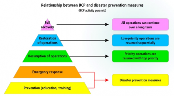 [그림1. 비즈니스 연속성 계획과 재해 복구 방법론 도식 (출처: 위키피디아)]