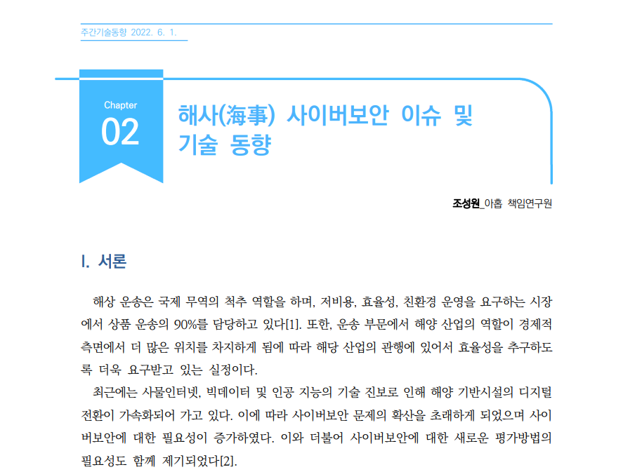 제목[주간기술동향 2048호] 해사 사이버보안 이슈 및 기술 동향