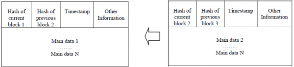 일반적으로 블록체인에서 블록은 현재, 이전, 타임스탬프 및 기타 정보의 해시와 같은 주요 데이터를 포함합니다. [그림 1]은 블록의 구조를 보여준다.