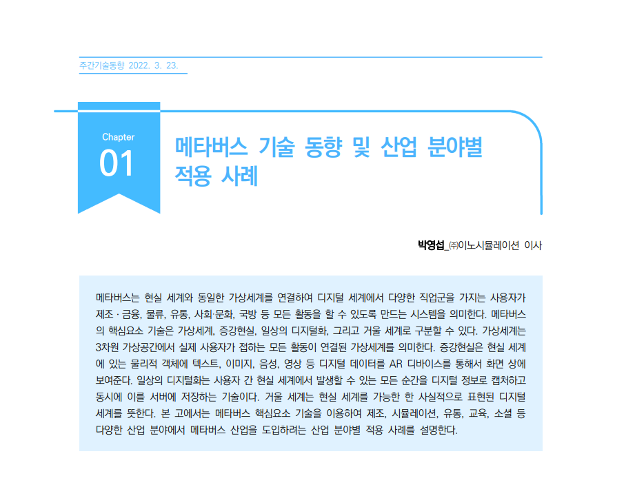 제목[주간기술동향 2038호] 메타버스 기술 동향 및 산업 분야별 적용 사례