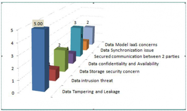 그림 2는 연구 조사에서 확인된 7가지 유형의 클라우드 컴퓨팅 보안 문제를 보여준다. 데이터 변조 및 유출은 고객과 클라우드 컴퓨팅 서비스 제공업체 모두에게 가장 중요한 문제이다. 이러한 유형의 클라우드 컴퓨팅 보안 문제에는 클라우드 컴퓨팅 리소스에 액세스할 수 없는 클라우드 컴퓨팅 사용자가 포함된다. 이들은 자신이 등록되지 않은 클라우드 컴퓨팅 서비스에 액세스하려는 공격자, 해커 또는 사용자이다.