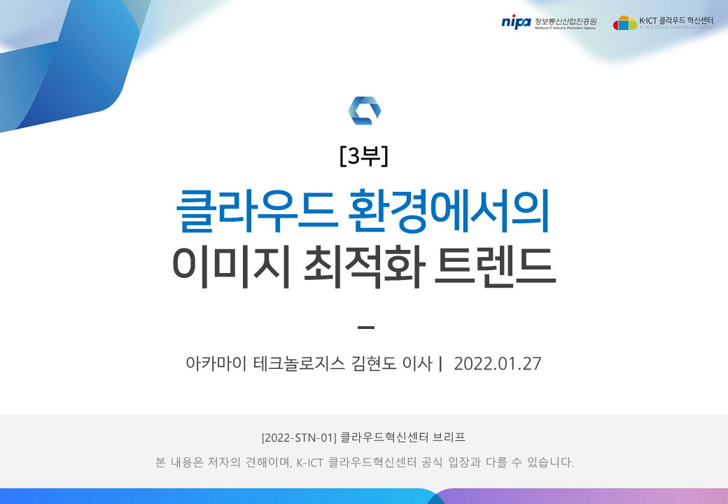 K-ICT 클라우드혁신센터의 저작물인 『[3부] 클라우드 환경에서의 이미지 최적화 트렌드』는 K-ICT 클라우드혁신센터에서 아카마이 테크놀로지스 김현도 이사에게 집필 자문을 받아 발행한 전문정보 브리프로, 클라우드 지원포털의 저작권 정책에 따라 이용할 수 있습니다. 다만 사진, 이미지, 인용자료 등 제3자에게 저작권이 있는 경우 원저작권자가 정한 바에 따릅니다.