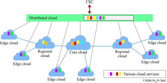 분산형 클라우드는 CSC의 가입에 따라 적절한 코어, 지역 또는 에지 클라우드에서 클라우드 서비스를 제공하기 위한 서비스 프로비저닝을 실현한다.