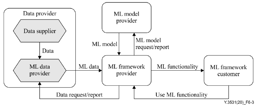 ML 프레임워크 공급자는 ML 프레임워크 고객에게 ML 기능을 제공한다. ML 프레임워크에는 ML 기능을 사용하기 위한 인터페이스가 포함되어 있다. ML 프레임워크 공급자는 ML 모델을 개발하기 위해 ML 프레임워크 고객에게 활동을 관리하고 보고한다.