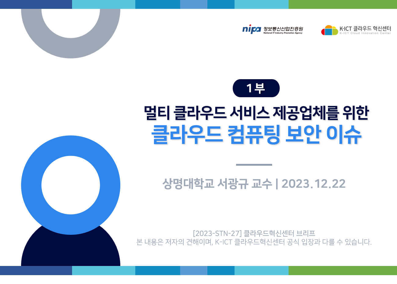 K-ICT 클라우드혁신센터의 저작물인 『멀티 클라우드 서비스 제공업체를 위한 클라우드 컴퓨팅 보안 이슈』은 K-ICT 클라우드혁신센터에서 상명대학교 서광규 교수에게 집필 자문을 받아 발행한 전문정보 브리프로, K-ICT 클라우드혁신센터의 저작권정책에 따라 이용할 수 있습니다.