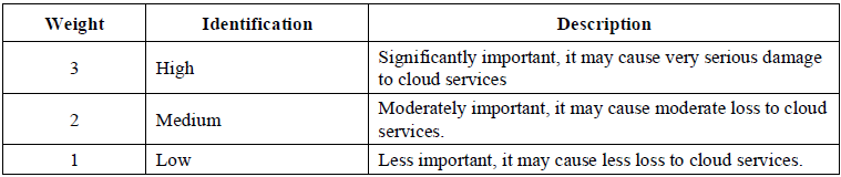 표 2는 클라우드 컴퓨팅 환경에서 위험 관리의 다양한 수준에 대한 핵심 가중치를 보여준다.