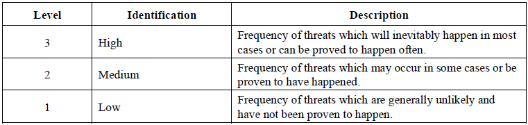 표 3은 클라우드 컴퓨팅 환경의 위협 빈도 수준과 설명을 보여준다.