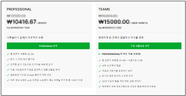 [그림2. 기능별 과금 예 (출처 : 에버노트)]
