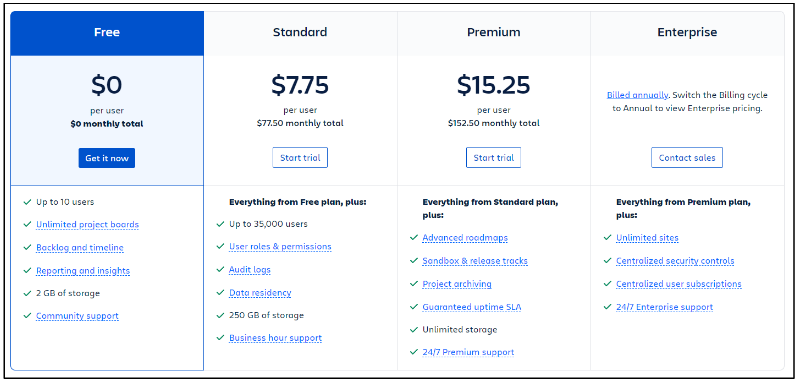 [그림3. Tier형 과금 예 (출처 : atlassian)]
