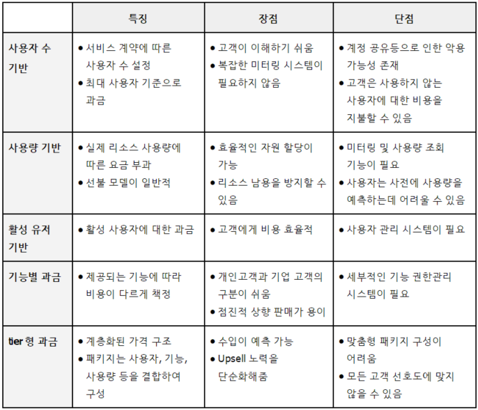 기능별 과금모델이란 서비스가 제공하는 기능의 종류와 개수에 따라 비용이 달라지는 모델이다.