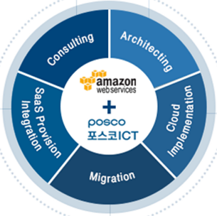 포스코아이씨티? 컨설팅 : cloud 전략 수립, 이행계획 수립, 비용 최적화, 아키텍쳐 최적화? SaaS/PaaS 서비스 제공 : 자체 SaaS서비스 제공, 외부 SaaS/PaaS 서비스 제공? 마이그레이션 : Application 마이그레이션, Data 마이그레이션? Cloud 구축 : AWS개발환경 인프라 구축 등? Cloud 아키텍쳐 설계 : AWS IaaS Architecting, 3rd Party SaaS Architecting