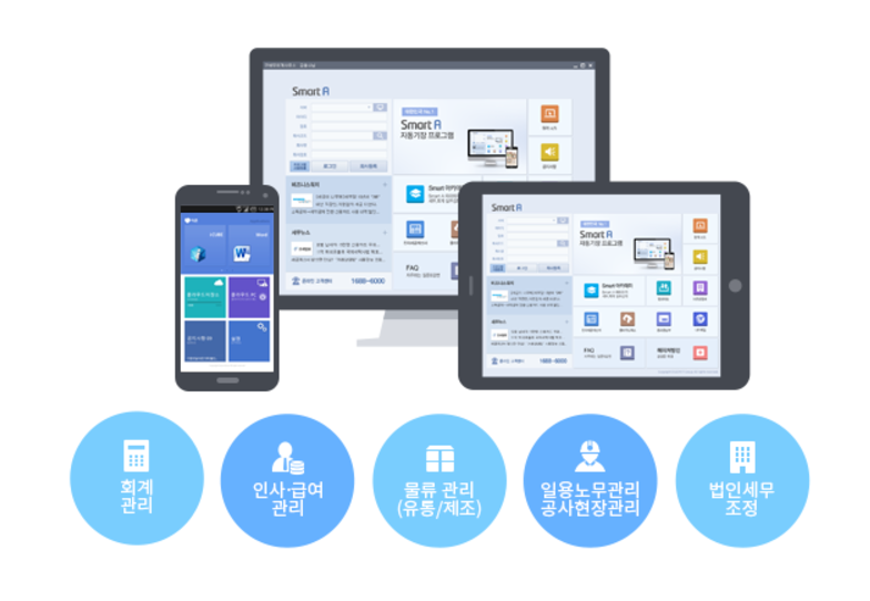 ? 언제 어디서나 PC와 모바일을 통한 실시간 업무처리 가능 ? 다양한 모듈(기본모듈 + 확장모튤 + 연동모듈)과 기능을 제공하여 상세한 관리 가능 ? 영업관리, 생산관리, 무역관리(수출/입) 등 편리한 편의기능 제공